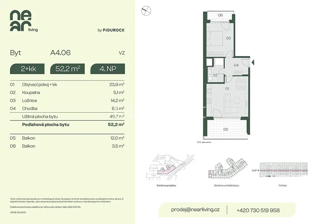 Nabízíme k prodeji byt 2+kk o podlahové ploše 52,2 m² s balkony 12 m² a 3,5 m² v developerském projektu NEAR living v Praze 8, vznikajícím na pomezí Palmovky a Karlína.