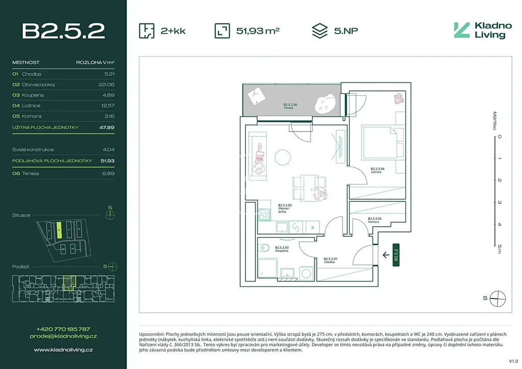 Nabízíme ke koupi moderní byt 2+kk o podlahové ploše 51,9 m² s terasou 6,9 m² v rezidenčním projektu Kladno Living, který vzniká v jedné z nejatraktivnějších lokalit města Kladno – Kročehlavy. Tento nový developerský projekt představuje jedinečnou příležitost pro ty, kteří hledají nové byty v Kladně nebo investici do nemovitosti s vysokým potenciálem zhodnocení.