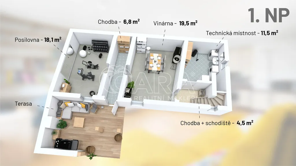 A suterén? Ten nabízí další tři místnosti a přímý vstup na zahradu.