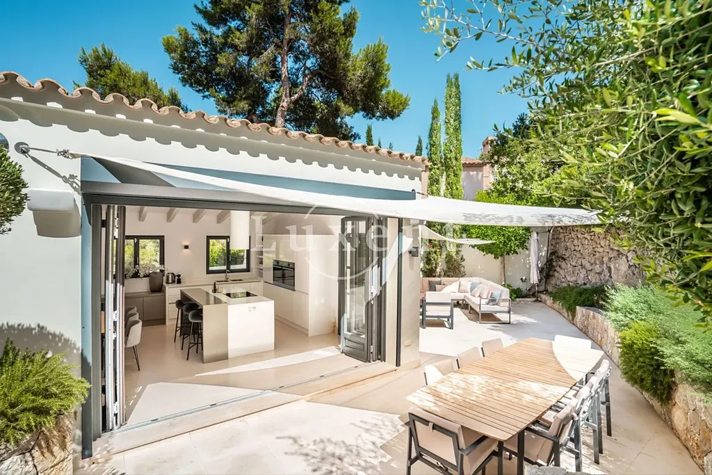 Nemovitost se může pochlubit krásnými venkovními prostory, které poskytují dostatek soukromí pro odpočinek a relaxaci. Pozemek disponuje bohatou, upravenou zahradou s odlehlou částí s bazénem a výhledem na majestátní pohoří Cala Moragues. Tato vila byla postavena s mimořádným důrazem na detail a za použití nejkvalitnějších materiálů. K domu náleží také garáž.
