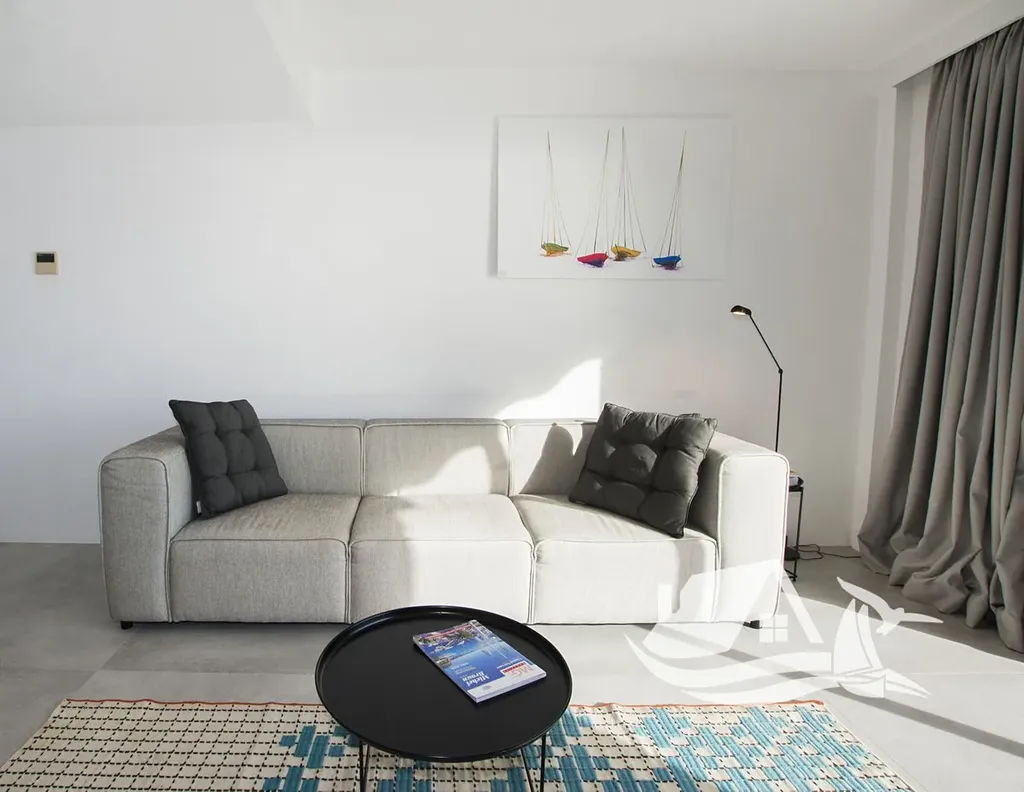 Byt je rozložen do dvou podlaží a působí vzdušně a přirozeně propojuje vnitřní i venkovní prostor. Dominantou je prostorný obývací pokoj s jídelní částí a moderní otevřenou kuchyní s ostrůvkem, která je plně vybavena spotřebiči. K dispozici jsou dvě ložnice, každá s vlastní koupelnou, přičemž jedna z nich má přímý vstup na terasu. Součástí je také samostatná toaleta pro hosty a hned tři slunné terasy, které vytvářejí ideální prostor pro relaxaci i setkávání s přáteli.