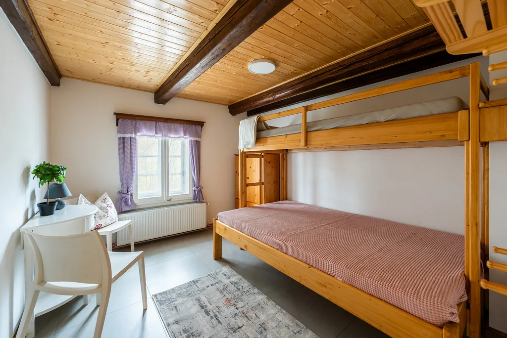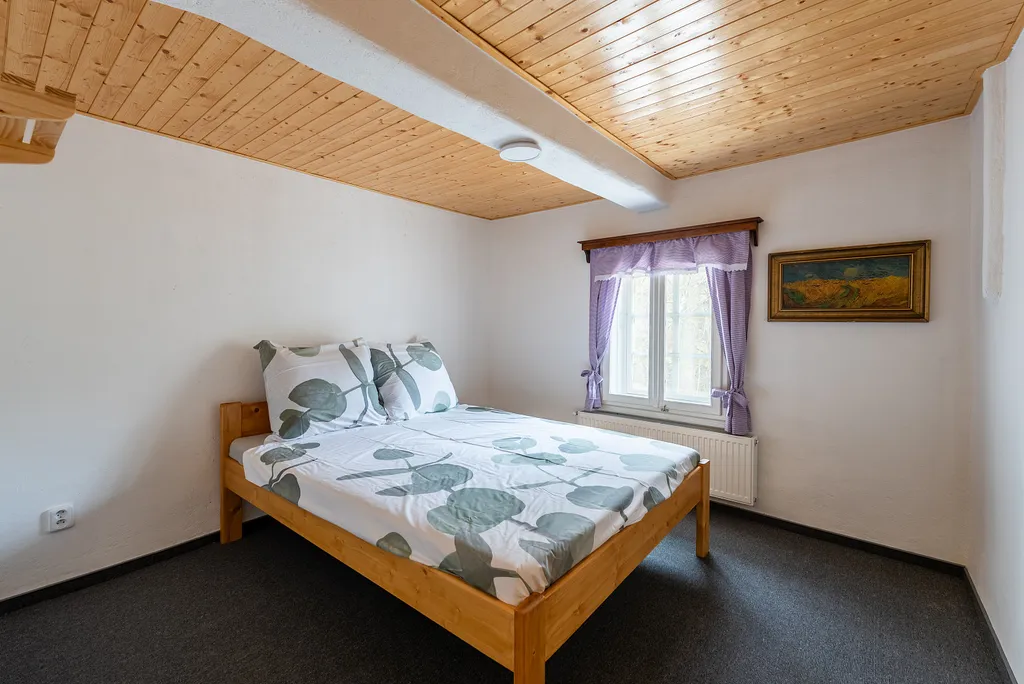 V přízemí byla obnovena původní světnice s kamennými prvky, provedena nová podlaha, štuky a instalována kuchyň na míru včetně varné desky a elektrické trouby. Dále se zde nachází dvě ložnice, koupelna a technická místnost.