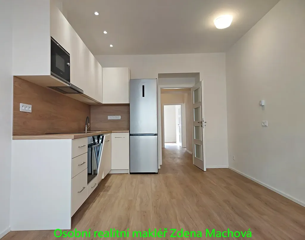 Byt prošel kompletní rekonstrukcí a je orientován na východ i západ, s výhledem do ulice Písecká a do klidného vnitrobloku. Vstupní předsíň působí velmi prostorně díky vysokým stropům a oknu, je zde příprava na pračku a místo vhodné pro vestavěné skříně. Další výklenek v předsíni lze využít jako pracovní kout pro home office. Z předsíně se vstupuje do ložnice (17,40m2) s výhledem do zeleného vnitrobloku, kde je rovněž prostor pro vestavěnou skříň.