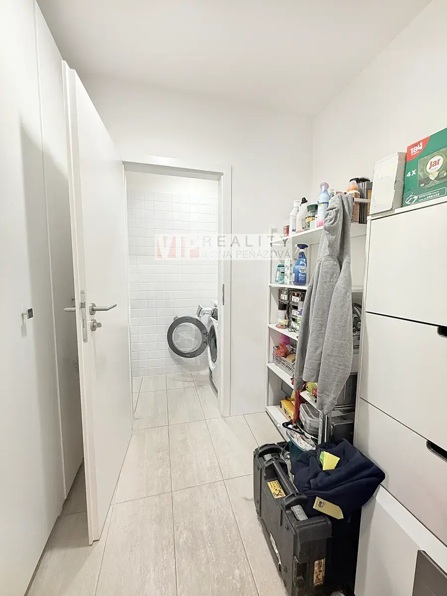 Už při vstupu vás byt zaujme svou vzdušností, promyšlenou dispozicí a příjemnou atmosférou. Předsíň nabízí pohodlné zázemí a navazuje na velkorysou koupelnu s WC, praktickou šatnu, technickou místnost a hlavní obytnou část.
