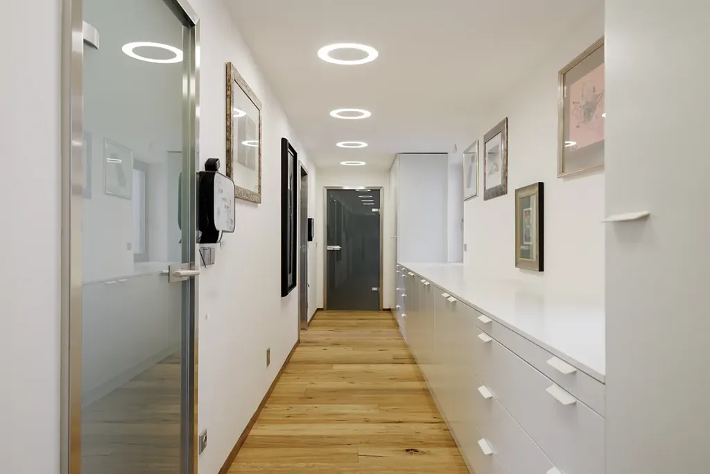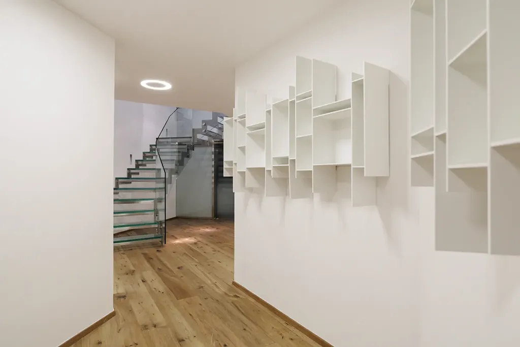 Hlavní podlaží je přístupné venkovním schodištěm nebo bezbariérovým vstupem. Toto podlaží nabízí prostornou vstupní halu s impozantním schodištěm, obývací pokoj s hlavním kuchyňským koutem a krbem a také přístupem na zahradu s altánem. Dále zde naleznete ložnici rodičů s vlastní koupelnou, šatnou a wellness zónu s bazénem, dětský pokoj, separátní WC a hlavní šatnu u vchodu do domu. Dům disponuje velkým množstvím úložných prostor, které jsou strategicky rozmístěny v celém interiéru, včetně vestavěných skříní a praktických skladovacích ploch.