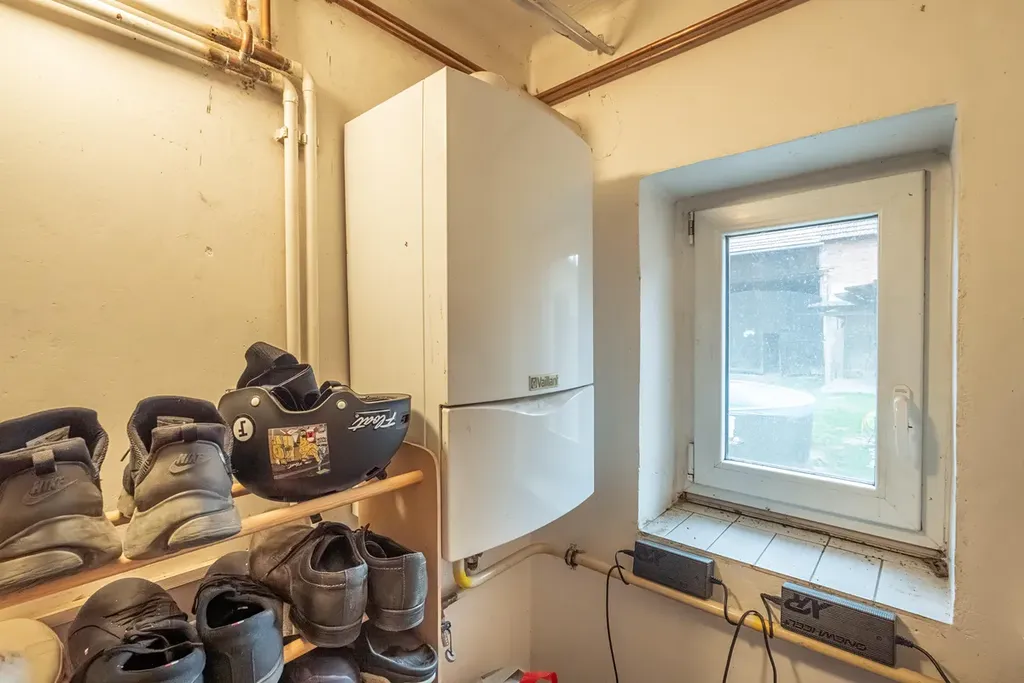Dům je vytápěn plynovým kotlem nebo kotlem na tuhá paliva. Ohřev vody zajišťuje elektrický bojler o objemu 200 l. Voda je přivedena z veřejného řádu, odpad je aktuálně sveden do jímky (v obci je již schválena výstavba kanalizace).