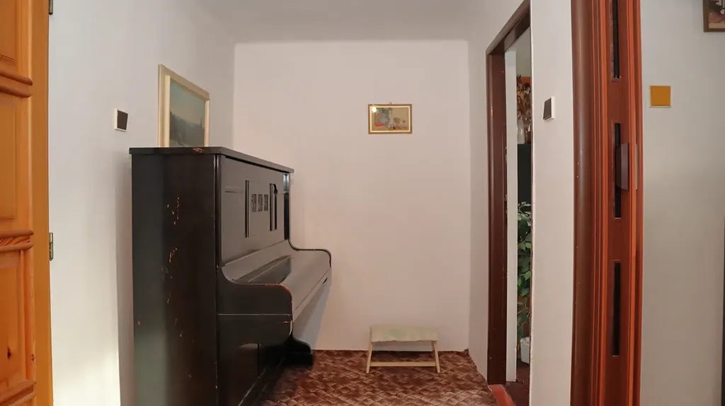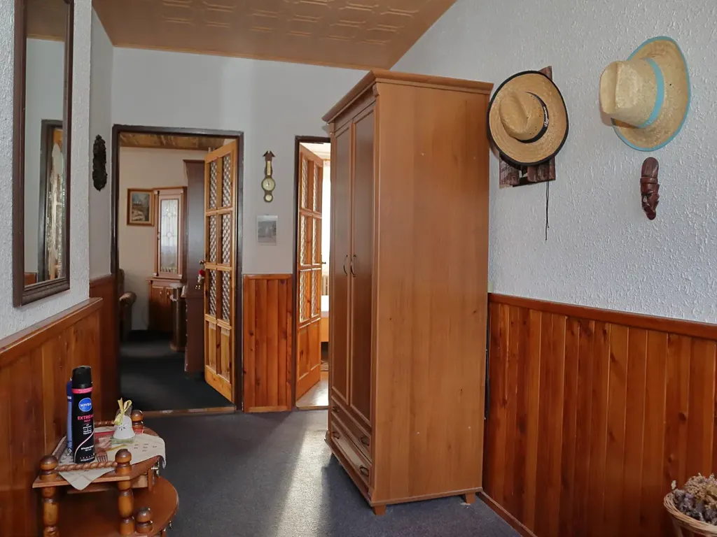 Vstup do domu je přes předsíň do centrální chodby se schodištěm do podkroví. Z chodby je samostatně přístupná kuchyň, ložnice, koupelna, samostatné WC a obývací pokoj. Podkroví je přístupné po betonovém schodišti vedoucí do centrální chodby, ze které je přístup do 2 ložnic a půdních prostor. Schodiště do sklepa je přístupné centrální chodbu v přízemí. Ve sklepě je chodba, sklad a kotelna s uhelnou.