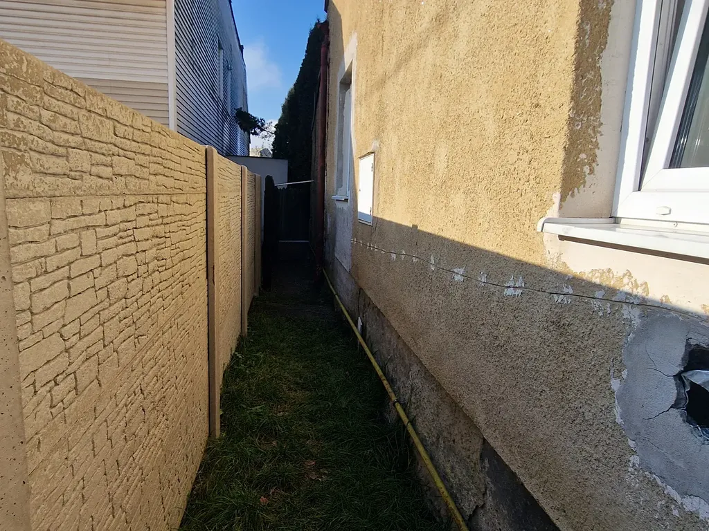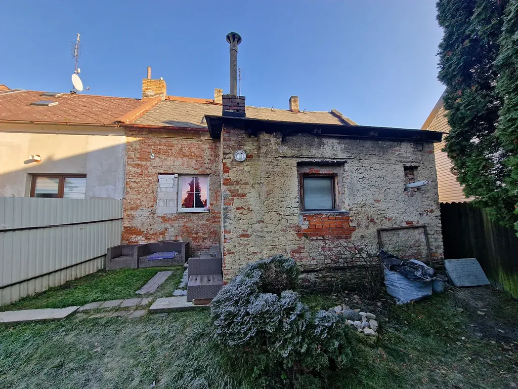Za domem se nachází prostorná zahrada, se vzrostlými stromy. Na pozemku za domem instalována dřevěná kůlna, která je velmi zachovalá.