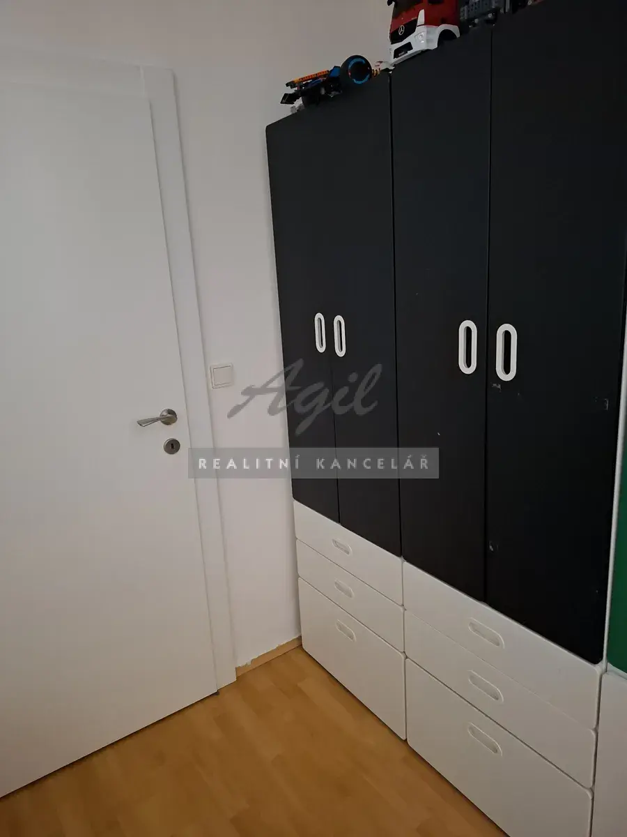 Předsíň s vestavěnými skříněmi, kuchyně, obývací pokoj se vstupem na lodžii, ložnice, dětský pokoj, koupelna, samostatné WC, balkon, sklepní kóje.