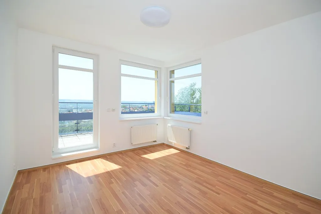 Jeden z mála bytů, ze kterého budete mít celé město jako na dlani, neboť dům je umístěn na kopci a terasa obepínající celý byt poskytuje výhled od východu na západ.