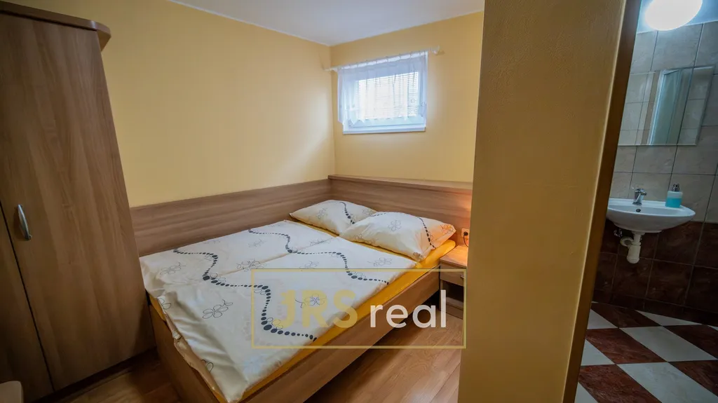 Po vstupu do nemovitosti Vás přivítá chodba, odkud vede schodiště do obytné části, kde se nachází 5 útulných, plně vybavených pokojů s celkovou kapacitou 11 lůžek. Každý pokoj disponuje vlastním sociálním zázemím – koupelnou se sprchovým koutem a toaletou, což zajišťuje maximální soukromí a pohodlí pro hosty.