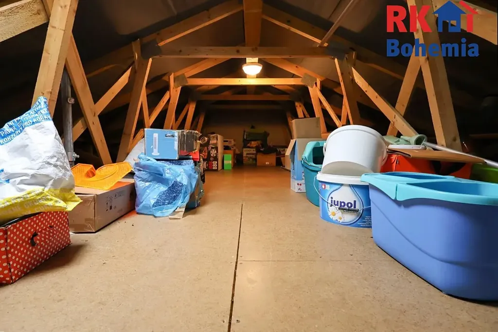 Půdu, která je v tuto chvíli částečně pochozí (cca 15 m2) lze zvětšit o další využitelný prostor.