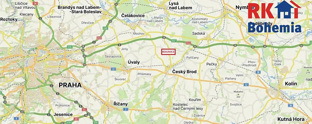 A víte, co je přední výhodou polohy Kounic? Je to právě dojezdová vzdálenost do Prahy. Jelikož se Kounice nachází cca 5 km od nájezdu na dálnici D11 (Praha - Hradec Králové), trvá cesta autem např. na Černý most do 20 minut. A právě toto vytváří z této nabídky jedinečnou příležitost, jak propojit bydlení na venkově s prací v Praze.
