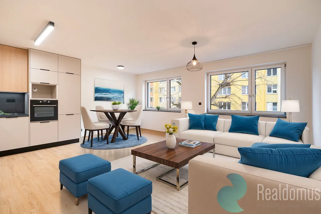 REALDOMUS vám zprostředkuje pronájem exkluzivního bytu 3+kk o velikosti 88,2 m², situovaný ve 3. nadzemním podlaží moderní novostavby v ulici B. Smetany, České Budějovice. Tento byt je navržen s důrazem na komfort, moderní technologie a klidné bydlení.