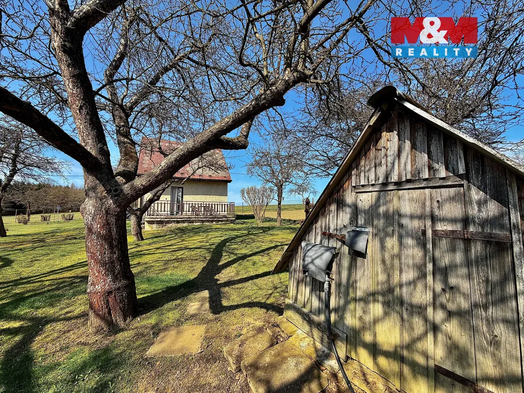 Na pozemku se nachází chatka 47 m² vhodná k rekreaci nebo jako zázemí pro zahradu. K dispozici je také vlastní studna, což zajišťuje dostatek vody pro zalévání i běžné využití.