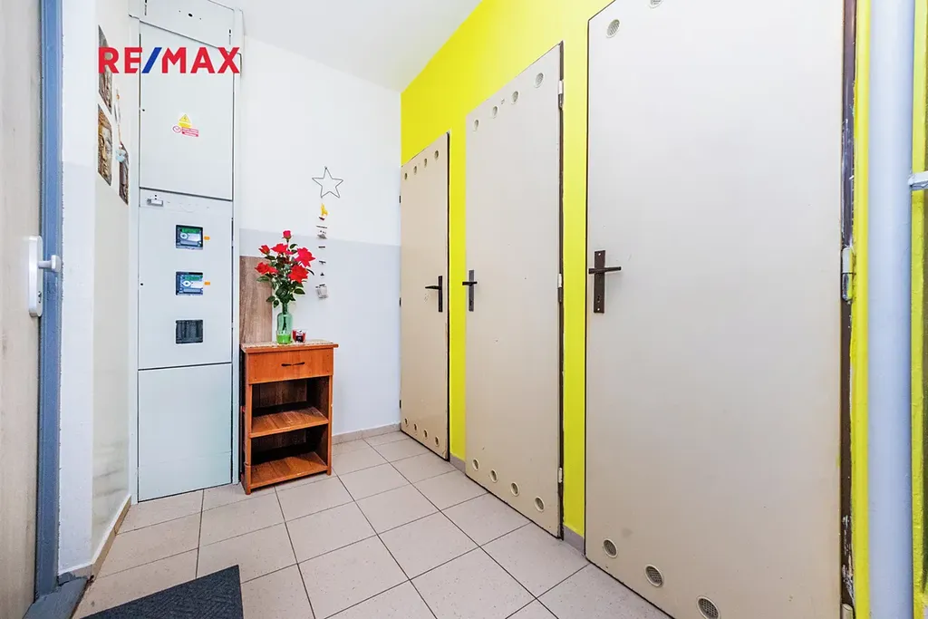 Dispozice zahrnuje dva samostatné pokoje, kuchyni a prostorný obývací pokoj se vstupem na lodžii (6 m²), která zajišťuje dostatek světla a příjemné místo k odpočinku. K bytu patří také komora na chodbě (1 m²) a sklep (4 m²), které poskytují dostatek úložného prostoru.