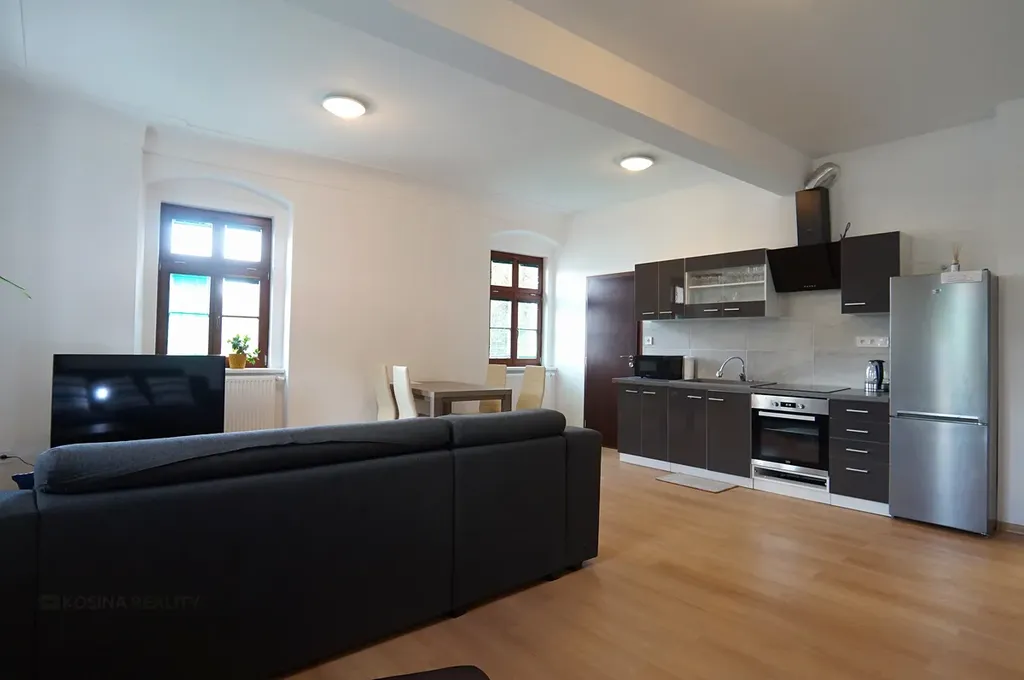 Nabízím k pronájmu byt 2+kk o výměře 55 m2, byt č. 1, ve druhém nadzemním podlaží rekonstruovaného klasicistního domu z 18. století. Od roku 1992 je dům prohlášený národní památkou. V roce 2021 byl dům kompletně rekonstruovaný. V prvním nadzemním podlaží domu jsou prostory restaurace, která je rekonstruovaná. Byt je vytápěný vlastním plynovým kotlem a má své vlastní měřidlo elektrické energie, plynu a vody. V bytě je v podstatě vše nové, koupelna, kuchyňská linka, podlahy a také nová lednice značky Beko. Byt se nachází ve druhém nadzemním podlaží, kam vede kamenné schodiště. Nájemné je ve výši 12.000,- Kč měsíčně. K nájmu se ještě platí poplatky za popelnici 350,- Kč a zálohy na vodu 500,- Kč (1 osoba) a internet 450,- Kč. Elektřinu a plyn si nájemce napíše na sebe. Vratná kauce je ve výši 20.000. Nájemné se platí vždy na měsíc následující. Poplatek za zprostředkování pronájmu je ve výši 12.000,- Kč. K nastěhování možný je možný ihned. Poblíž domu je mnoho možností k parkování. Více informací při osobní schůzce. Majitel domu si přeje nájemce výhradně pracující, bez exekucí nebo insolvence. Tepelný štítek nebyl zatím dodán, proto uvádím PENB třídu „G“. Pro více informací mě kontaktujte.