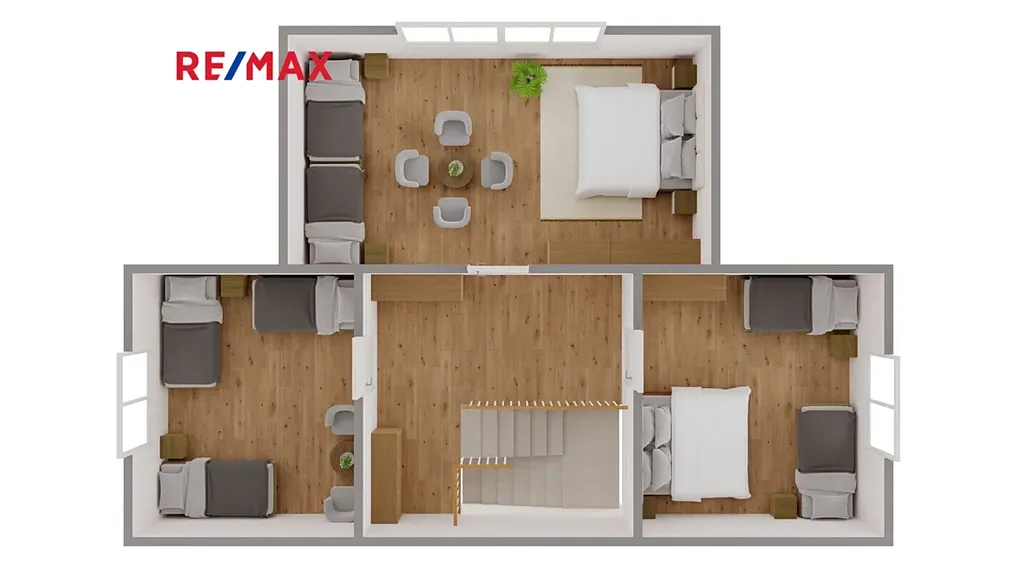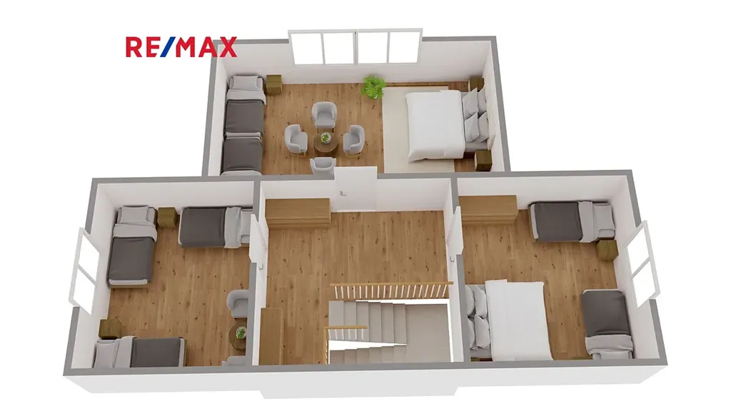 Chata nabízí dostatek prostoru i soukromí – čtyři prostorné pokoje pohodlně ubytují až 10 osob. Srdcem domu je světlý obývací pokoj s krbem, kde si snadno představíte večery po výletě, kdy venku voní les a uvnitř praská dřevo. Na něj navazuje plně vybavený kuchyňský kout, připravený na víkendové vaření i delší pobyty.
