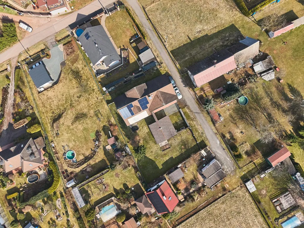 U domu se nachází udržovaná zahrada, s vysázenými okrasnými stromy a květenou. Celý pozemek je oplocen, v přední části s vjezdovou bránou. Na pozemku se též nachází zděná stavba na uskladnění věcí a nářadí s navazujícím zastřešením pro parkování vozidla.