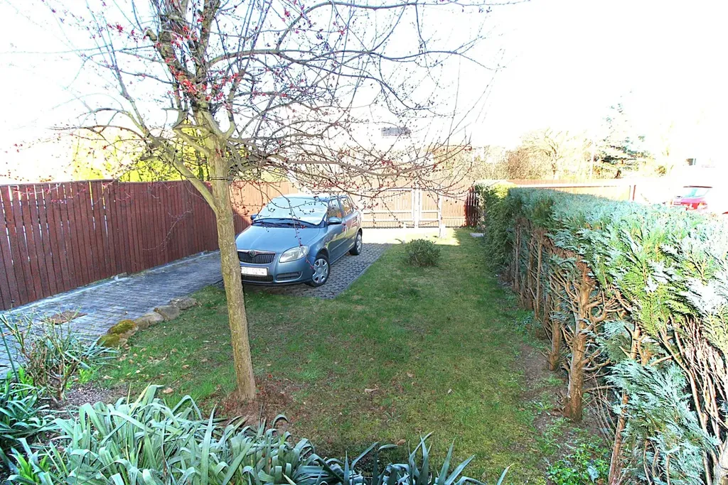 Nabízíme prostorný řadový dům, dispozičně řešen jako 4+1, se zahradou, zahradní terasou, terasou ve 2 NP domu s výhledem na zahradu a oplocenou předzahrádkou, v historické obci Jenštejn, 1 km od severovýchodní hranice Prahy. Vstup a vjezd k domu je samostatný, oddělen plotem, parkovací místa se nachází před domem na vlastním oploceném pozemku. Dům z r.2007 se skládá ze tří podlaží (dvě podlaží + podkroví), celková užitná plocha domu je 144,53m2. V 1. podlaží domu se nachází kuchyň (12 m2), prakticky propojena s obývacím pokojem (22 m2), z obývacího pokoje je vstup na zahradní terasu, do zahrady se vzrostlými stromy. Zahradní domek slouží skvěle jako úložný prostor. V 1. podlaží domu se nachází WC s umyvadlem. Do 2. podlaží vede pohodlné dřevěné schodiště, zde jsou dvě ložnice (17,5 a 16 m2) a koupelna s vanou a WC (přes 5 m2), s dostatkem denního světla, v koupelně je umístěný kombinovaný plynový kotel s integrovaným zásobníkem, který zajišťuje vytápění domu a ohřev vody. Z jedné z ložnic je vstup na terasu. Z terasy a zahrady, zahradní terasy je díky tomu, že se dům nachází na kraji obce, volný výhled. Příjemné podkroví je velké 40 m2, není problém zde dobudovat další koupelnu. Dům je napojen na veškeré inženýrské sítě (el., vodu, kanalizaci, plyn). V místě je velmi dobrá dopravní dostupnost (bus na Černý Most, Letňany), v obci se nachází pošta, škola, školka. Koupi domu lze financovat prostřednictvím hypotečního úběru, který rád vyřídí náš specialita. K dispozici ihned.