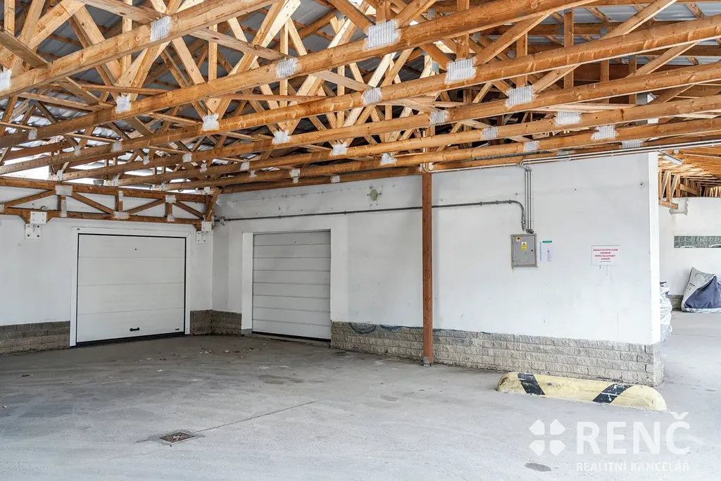 Garáž je ve výborném technickém stavu, je vybavena kvalitními sekčními vraty Hörmann na dálkové ovládání. Podlaha je betonová (nátěr) a prostor je prosvětlen okny ze skleněných tvárnic (luxfer).