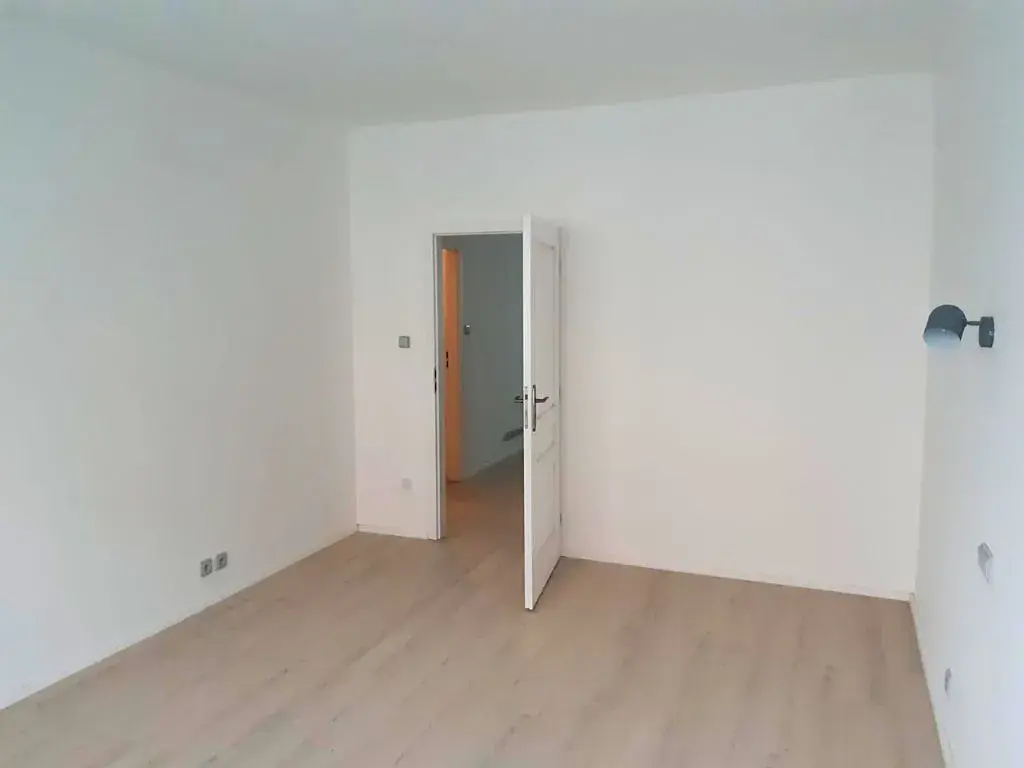 Byt prošel před několika lety rekonstrukcí a je nabízen nezařízený, vybavený pouze kuchyňskou linkou a volně stojící lednicí, což dává novému nájemci ideální příležitost zařídit si interiér dle vlastního vkusu. Ložnice je orientována na východní stranu, obývací pokoj a kuchyň na západ.