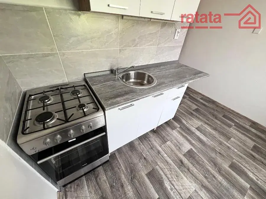 Je to čistý, slunný byt. Je zde kuchyňská linka, plynový sporák, vana s umyvadlem a WC. Na podlahách je položeno lino. Byt je volný k nastěhování od 7.4.2026.