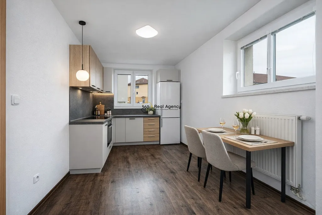 Samostatná ložnice nabízí dostatek soukromí a klidu – ať už pro pár, jednotlivce nebo práci z domova. Prakticky řešená kuchyně doplňuje funkční dispozici, která dlouhodobě funguje jak pro vlastní bydlení, tak i pro pronájem.