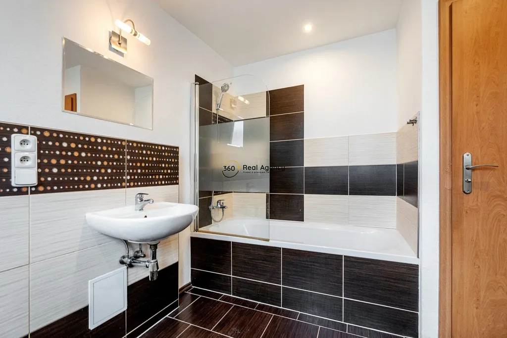 Velkým benefitem je prostorná koupelna s vanou a toaletou, která poskytuje komfort každodenního užívání.