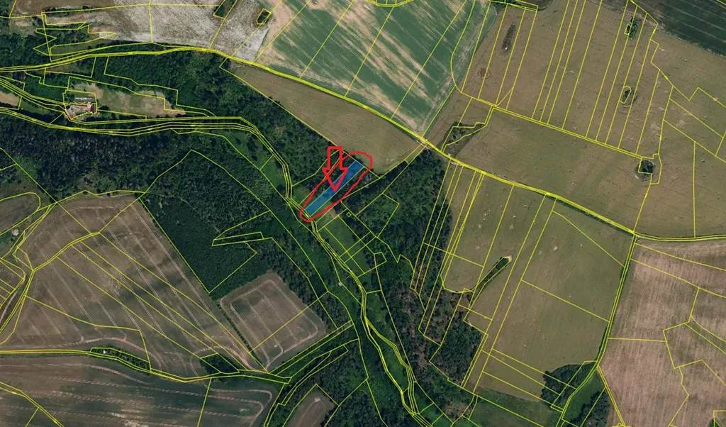 Příjezd k pozemku je z horní strany po poli.