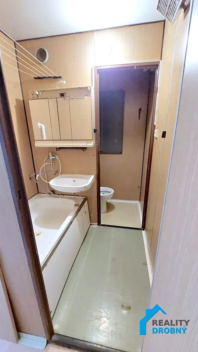 V kuchyni je kuchyňská linka, elektrický sporák, digestoř, dřez. V koupelně je sprchová vanička, umyvadlo, galerie se zrcadlem a toaleta. V chodbě je prostorná šatní skříň. Podlahy - linoleum. Vytápění a ohřev vody dálkové.