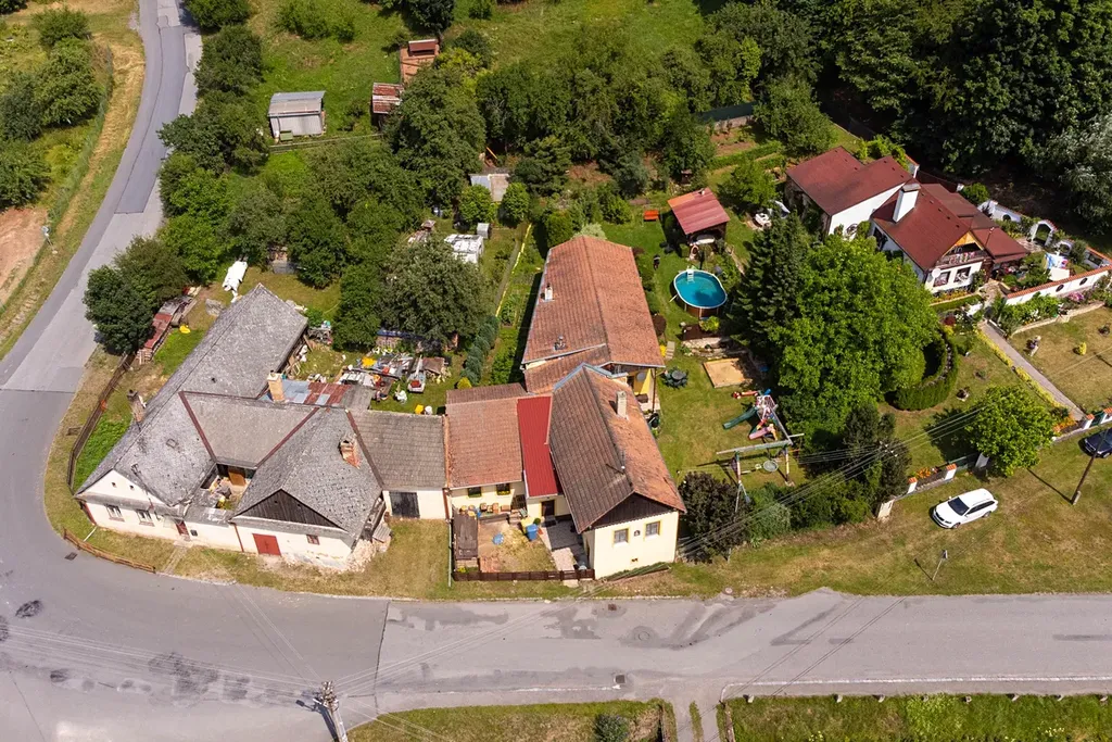 Dům stojí na samostatném pozemku o velikosti 1064 m², což zaručuje dostatek soukromí a prostoru. Na pozemku je umístěno dětské hřiště, terasa, záhony, pozemek je lehce svažitý a skloněný k jihu. Příjemné chvíle můžete trávit na zahradě s bazénem, který je ideálním místem k relaxaci je zde také dřevník a pergola. K dispozici jsou také dva sklepy o ploše cca. 35 m² a dílna který nabízí dostatečný úložný prostor. Parkování může být i přímo na pozemku.