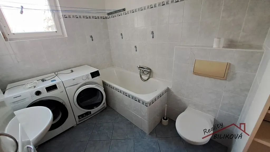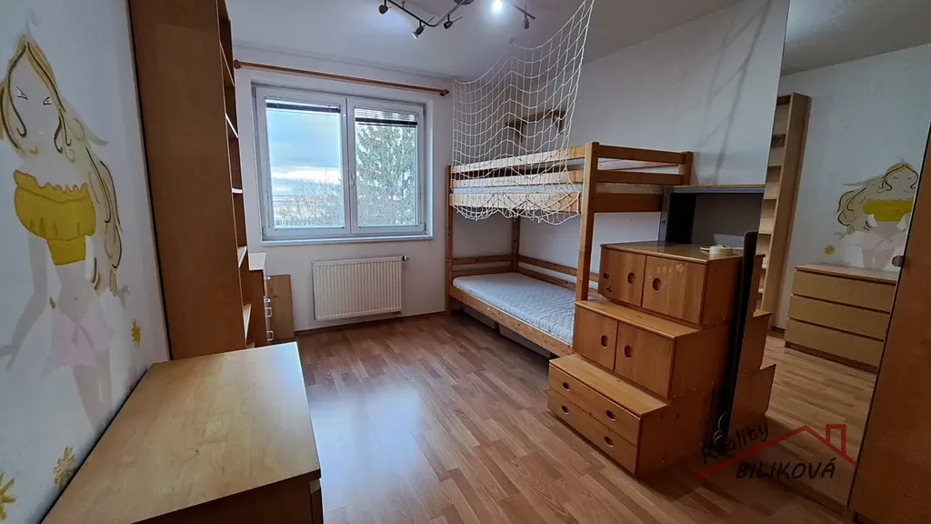 Byt je vybavený : Dětský pokoj- skříně, palanda, komody. V kuchyni jídelní stůl, 4 židle, kuch. linka včetně spotřebičů. V pokoji psací stůl, police, dvoulůžko a vestavěná skříň. V koupelně pračka a sušička.