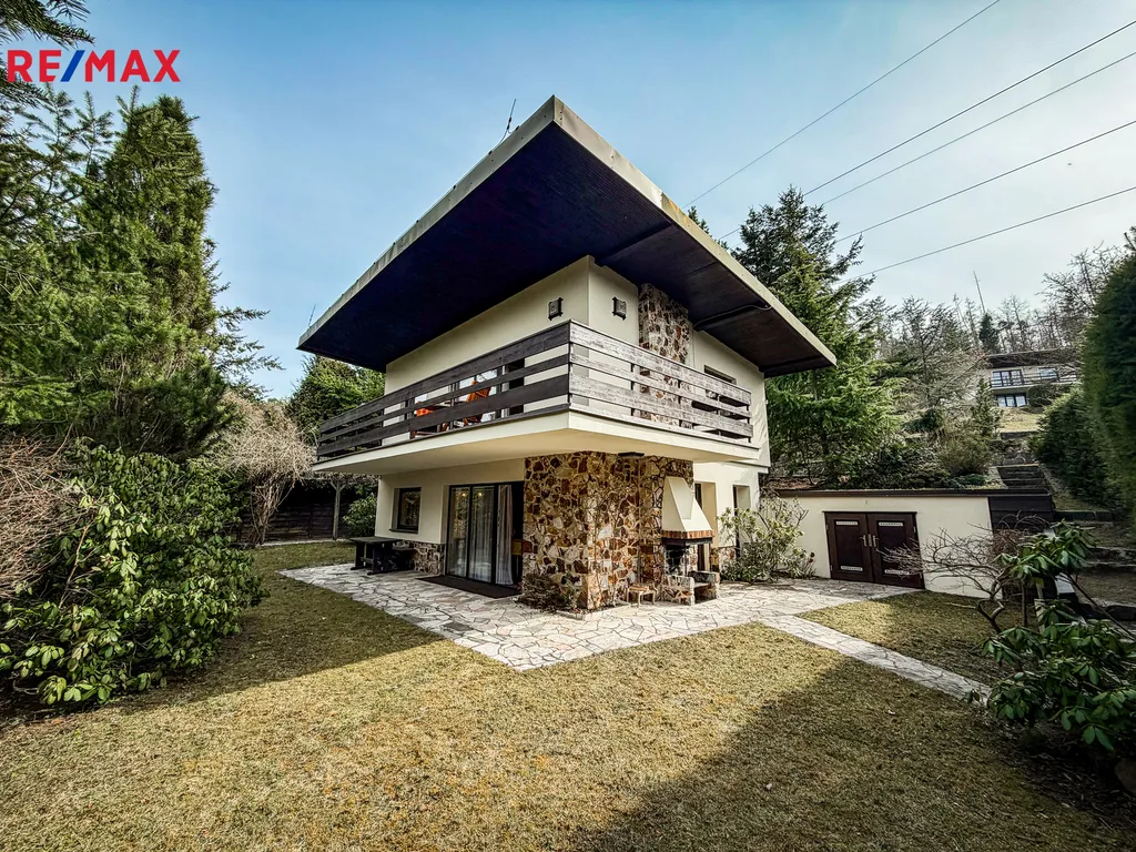 Samotná chata má obytnou plochu 105 m² a její dispozice nabízí komfortní a praktické zázemí pro celoroční užívání. V přízemí se nachází prostorná obytná místnost s krbem a kuchyňskou linkou, koupelna s vanou a WC, a také technická místnost. V patře jsou dva samostatné pokoje, druhé WC a velký krytý balkón s krásným výhledem do okolní zeleně – ideální místo na ranní kávu nebo večerní posezení.