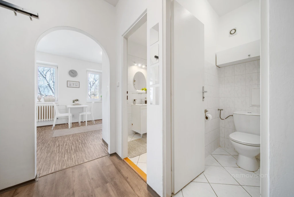 Byt vás mile překvapí svou vzdušností a praktickým uspořádáním. Najdete zde vstupní chodbu s úložným prostorem, koupelnu, samostatné WC, světlý obývací pokoj s kuchyňským koutem a útulnou malou ložnicí.