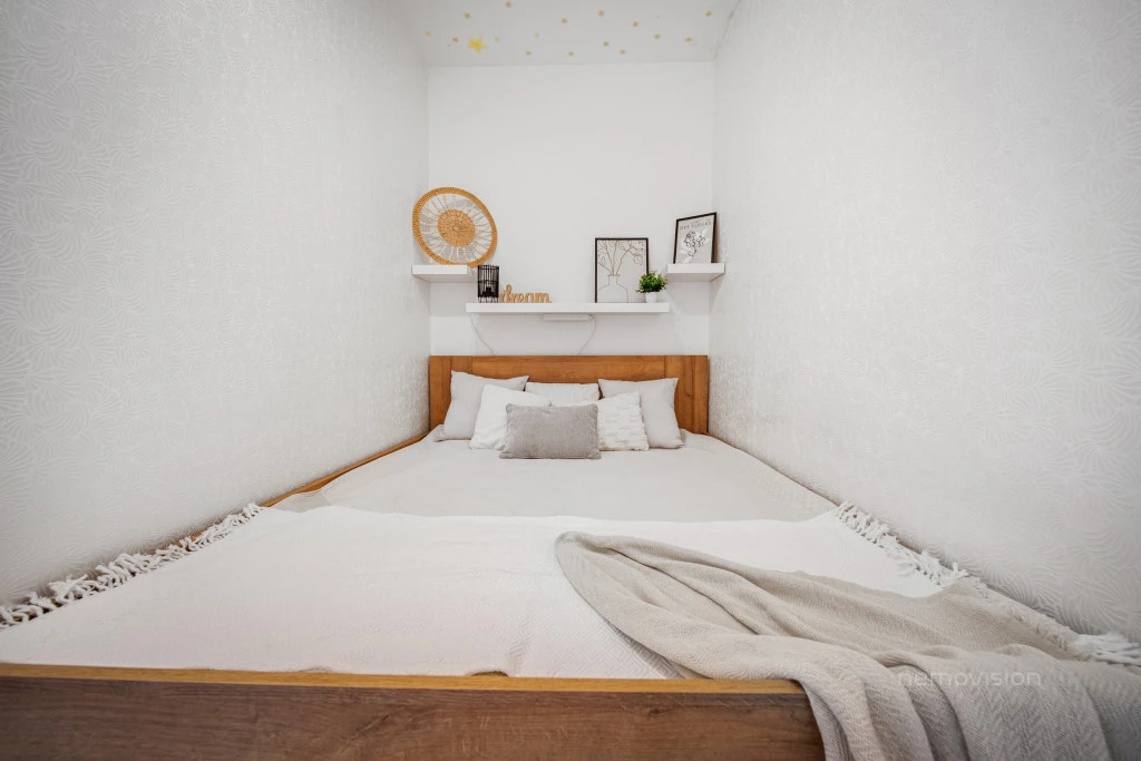 Velkou výhodou bytu je jeho variabilita – úpravou dispozice lze snadno vytvořit větší a plnohodnotnou ložnici, která poskytne vyšší komfort bydlení.