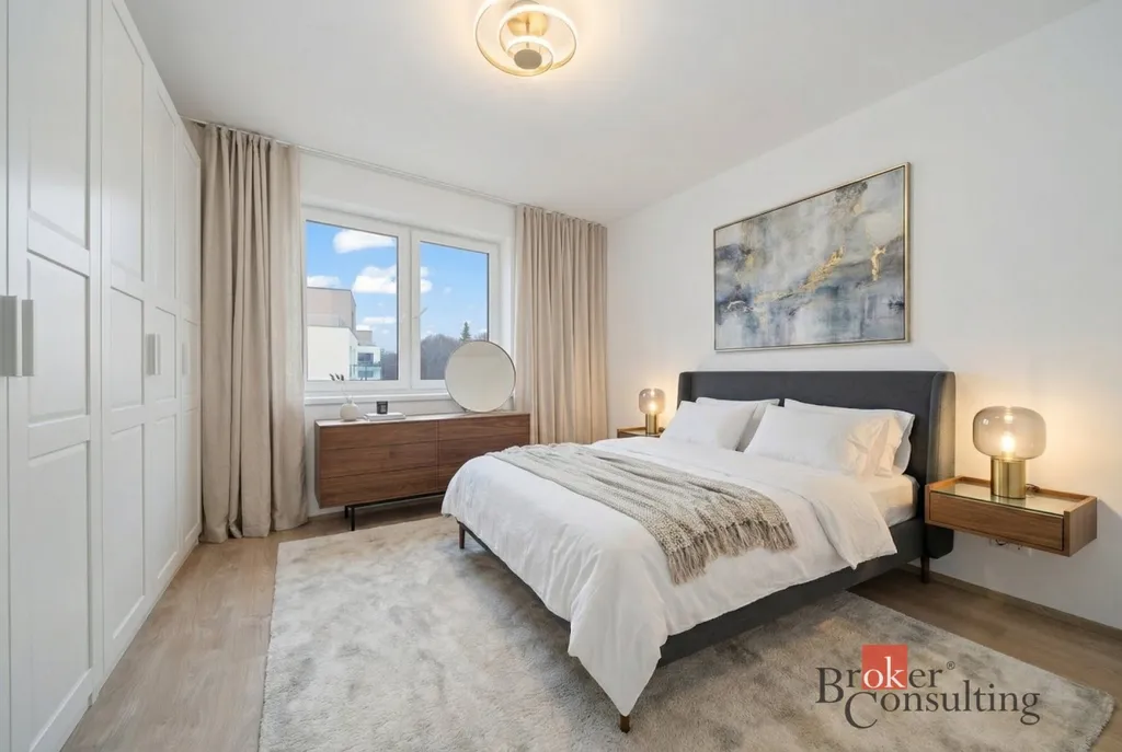 K bytu náleží také sklepní kóje, která poskytuje další úložný prostor. Budoucí majitel má navíc možnost přednostně dokoupit parkovací místo v garáži za 260 000 Kč, což výrazně zvyšuje komfort bydlení.