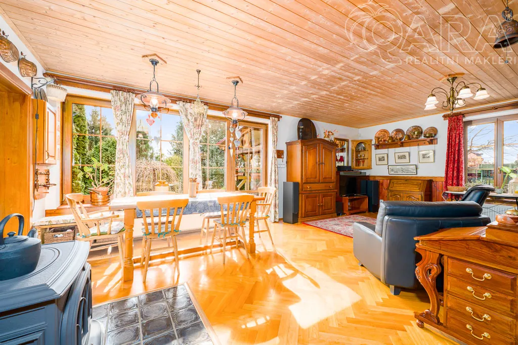 Hledáte bydlení v blízkosti přírody ? Nabízíme Vám k prodeji krásný rodinný dům o dispozici 4+kk o užitné ploše 138 m2. Tento nízkoenergetický rodinný dům se nachází v klidné části České Kamenice nedaleko Českého Švýcarska. Dům Vám nabízí krásný obývací pokoj, propojený s kuchyňskou linkou a krásným výhledem do udržované zahrady a vstupem na terasu s pergolou. Dále máte k dispozici tři ložnice, dvě koupelny, toaletu, půdní prostor, venkovní zastřešené parkovací stání, zahradní domek a dřevník. V celém domě jsou podlahy z lakovaných dubových parket a všechny stropy jsou z borovicového dřeva. K vytápění domu slouží elektrický kotel, podlahové vytápění pod dlažbou v koupelnách, na chodbě a v kuchyňské části. Určitě oceníte i vytápění v litinových krbových kamnech od značky Jotul. K dispozici máte krásnou, udržovanou zahradu o celkové ploše 799 m2, která Vám nabízí dostatek soukromí s převážně stále zelenými keři a stromy. K parkování Vám poslouží stání pod dřevěným přístřeškem. Město Česká Kamenice Vám nabízí krásnou přírodu, procházky, obchody, restaurace, školy, školky. Domluvte si prohlídku a přijďte se sami přesvědčit o jedinečnosti tohoto místa.