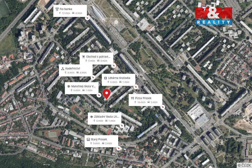 Nabízíme ke koupi moderní byt 3+kk o podlahové ploše 63 m² (užitná plocha je 54 m²), situovaný v přízemí panelového domu s výtahem v žádané lokalitě Praha 9 – Prosek. Součástí bytu je prostorná lodžie o velikosti 7 m² a sklepní kóje o výměře 2 m² umístěná na stejném patře. Dispozice bytu nabízí světlý obývací pokoj propojený s kuchyňským koutem a vstupem na lodžii, dvě samostatné ložnice a koupelnu s vanou a toaletou. V bytě jsou vestavěné skříně, kuchyňská linka se spotřebiči včetně lednice s vodním filtrem a rozvody optického internetu. Rekonstrukce proběhla v letech 2022–2023 a zahrnovala nové rozvody elektřiny a vody, stropní podhledy s akustickou izolací, nové dveře i okna, včetně doplnění prostředního okna v kuchyni pro lepší prosvětlení. Podlahy jsou vyrovnané a pokryté vinylovou krytinou s click systémem. Dům je po revitalizaci – nová střecha, modernizované rozvody, stoupačky, kamerový systém, bezpečnostní vstupy a bezbariérový přístup. Parkování v rezidentní zóně.