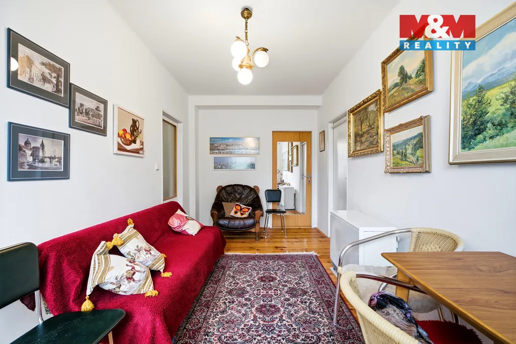 Z chodby se vstupuje do obývacího pokoje, kde jsou instalována elektrická topidla (gamaty) a dřevěná okna. Součástí bytu je také kuchyně s praktickou spíží. Ložnice nabízí klidné zázemí pro odpočinek. Druhý obývací pokoj je vybaven krbovými kamny a má přímý vstup na balkon.