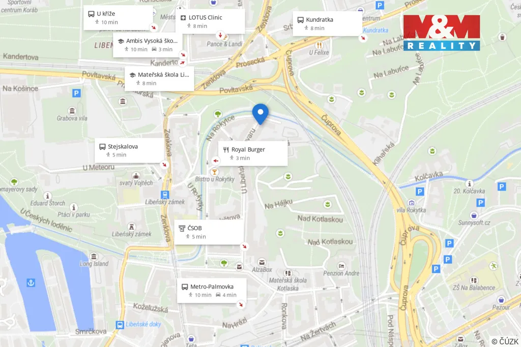 Na metro Palmovka (trasa B) a tramvajové uzly dojdete za par minut. V centru jste do 10 minut.