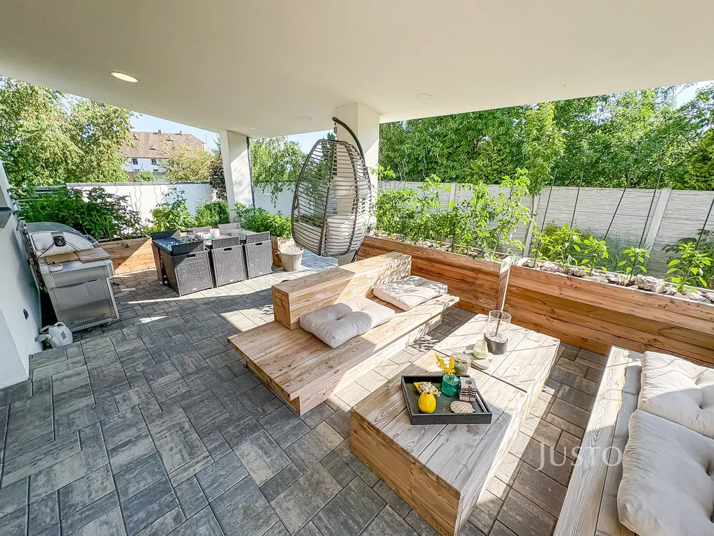 - na obývací pokoj navazující prostorná zastřešená terasa (36 m²)