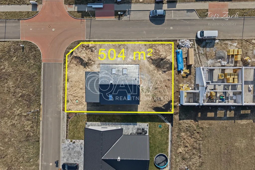 Dům stojí na pozemku o velikosti 504 m², který poskytuje dostatek místa pro zahradu, odpočinek i rodinné aktivity.