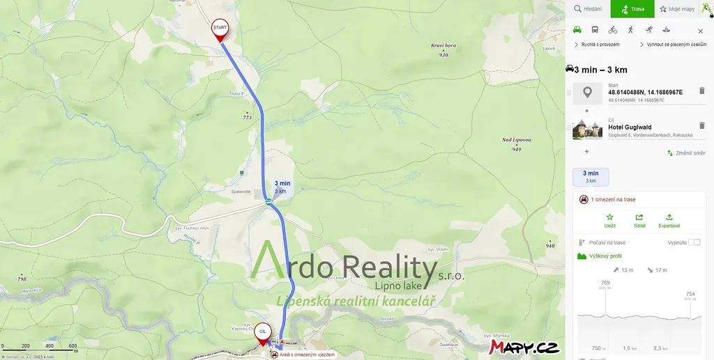 Za Přední Výtoní směrem na Guglwald najdete rozsáhlý pozemek o velikosti 13.899 m2, který je v katastru nemovitostí označen jako ostatní plocha. Hodí se po nezbytných úpravách k využití například jako manipulační plocha. Jedná se o lokalitu Na Střelnici. Dovolte, abychom zdůraznili velký potenciál tohoto pozemku. Lipenské jezero a krásná obec Přední Výtoň, která leží na pravém břehu, je vzdáleno jen 2 km.