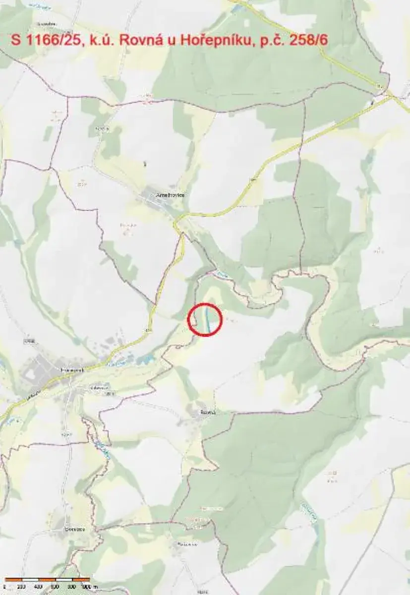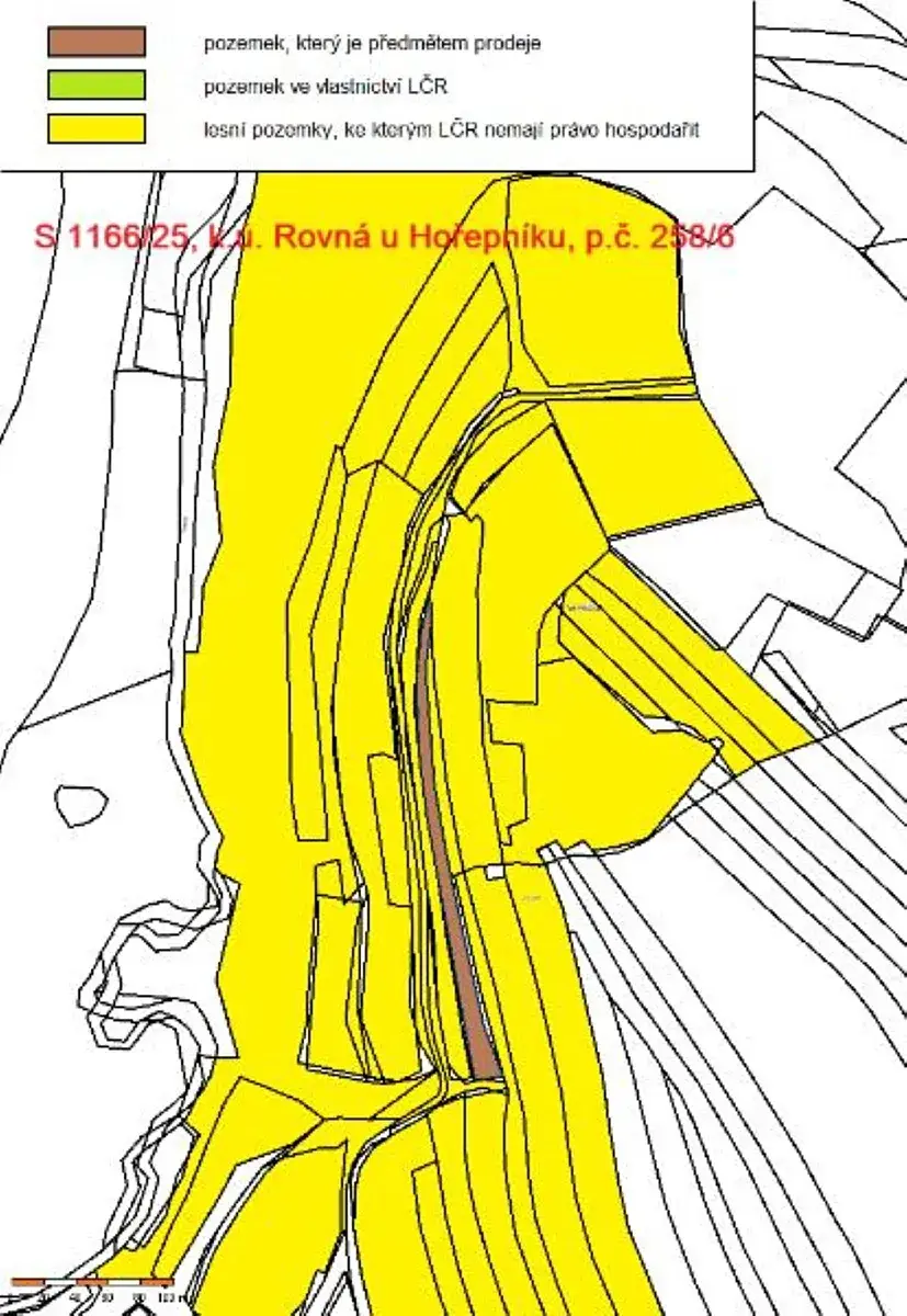 Jedná se o prodej lesního pozemku parc. č. 258/6 o výměře 2569 m2, situovaného severně od obce Rovná, na okraji privátního lesa. Na části pozemku je holina, na okrajích pozemku roste několik smrků.