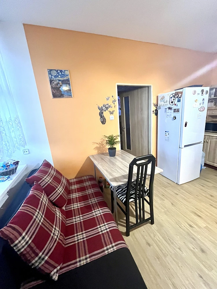 Byt je v osobním vlastnictví a je ve stavu, který umožňuje okamžité nastěhování. Jednotka zahrnuje kuchyň, pokoj a koupelnu s WC.