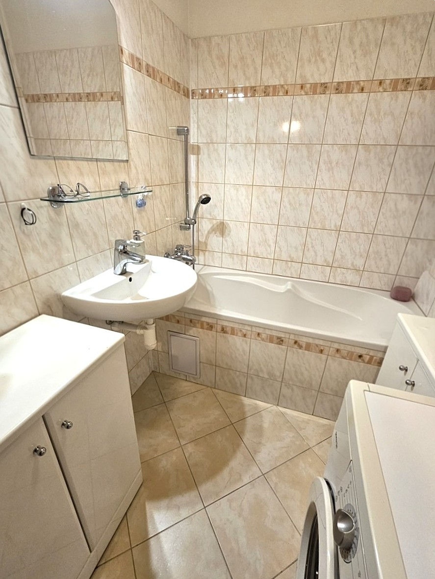 Byt je po rekonstrukci a má 2 pokoje neprůchozí. Je částečně zařízený nábytkem viz foto včetně mnoho úložného prostoru formou policových regálů, komod, vestavěných skříní a i prostorné komory s úložným prostorem, která je přímo v bytě. Kuchyně je vybavena plynovým sporákem, digestoří, lednicí s mrazákem, myčkou a mikrovlnnou troubou. V případě potřeby je možné si od stávajícího nájemníka odkoupit el. stolní troubu a psací stůl v ložnici. Koupelna je vybavena vanou, umývadlem, pračkou a 2 skříňkami. WC je zvlášť. Na podlaze jsou koberce, plovoucí podlaha a dlažba. Topení je ÚT. Parkování je možné v okolí domu.