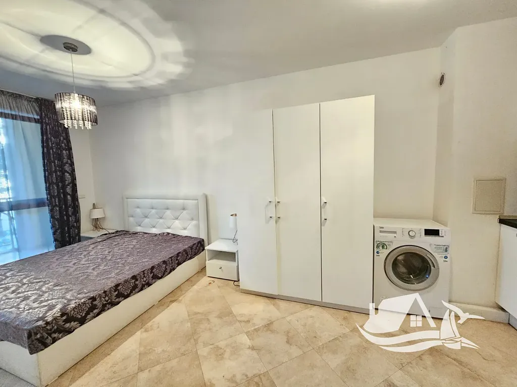 Byt o dispozici 1+kk a velikosti 35 m² se nachází v přízemí moderní šestipodlažní budovy. Je světlý, vzdušný a prakticky řešený. Obývací pokoj je propojen s kuchyňským koutem a vytváří otevřený prostor pro každodenní život i letní pohodu. Koupelna s toaletou je funkční a udržovaná. Balkon s výhledem na bazén se stává místem pro ranní kávu i večerní sklenku vína.