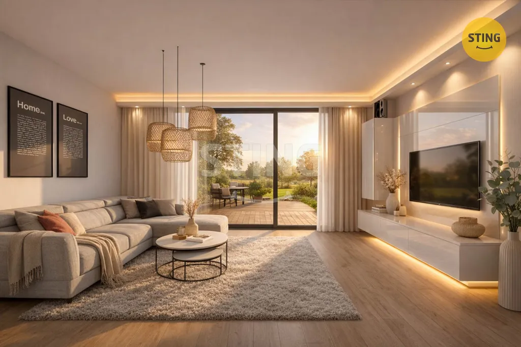 Nabízíme k pronájmu moderní byt o dispozici 3+kk, který se nachází v obci Bílov. Jedná se o novostavbu s celkovou užitnou plochou 74,32 m². Bytová jednotka zahrnuje zádveří, ložnici, hostinský pokoj, koupelnu se sprchovým koutem, samostatné WC a prostornou kuchyň propojenou s jídelní částí s obývacím pokojem. Z obývacího pokoje je přímý vstup na terasu, přičemž přístup na terasu je možný také ze všech ostatních místností, v oknech jsou venkovní žaluzie (dálkové ovládání). Součástí terasy je předzahrádka vše o celkové velikosti 97,59m2. Kuchyně bude k dispozici včetně vestavěných spotřebičů. Vytápění je zajištěno centrálním tepelným čerpadlem Regulus - termostat v každém bytě pro individuální nastavení teploty, podlahové teplovodní vytápění v každém bytě, ohřev TUV centrální s cirkulačním rozvodem a měřičem spotřeby v každém bytě, nemovitost je napojena na vodovodní řád, kanalizaci, elektřinu. Součástí bytu je parkovací stání s elektrodobíjecí stanicí, k dispozici společná kolovna. K bytu náleží možnost využití společné komunitní zahrady, která je pro obyvatele domu. Lokalita nabízí výbornou dopravní dostupnost do Ostravy (15min autem), do Bílova (5min autem) a umístění nemovitosti má výbornou dostupností na dálnici D1. V obci se nachází kompletní občanská vybavenost. Fotky - vizualizace. Měsíční nájem 25.000,- Kč (plus elektřina, služby, kauce 2 měsíce, provize realitní kanceláři.)