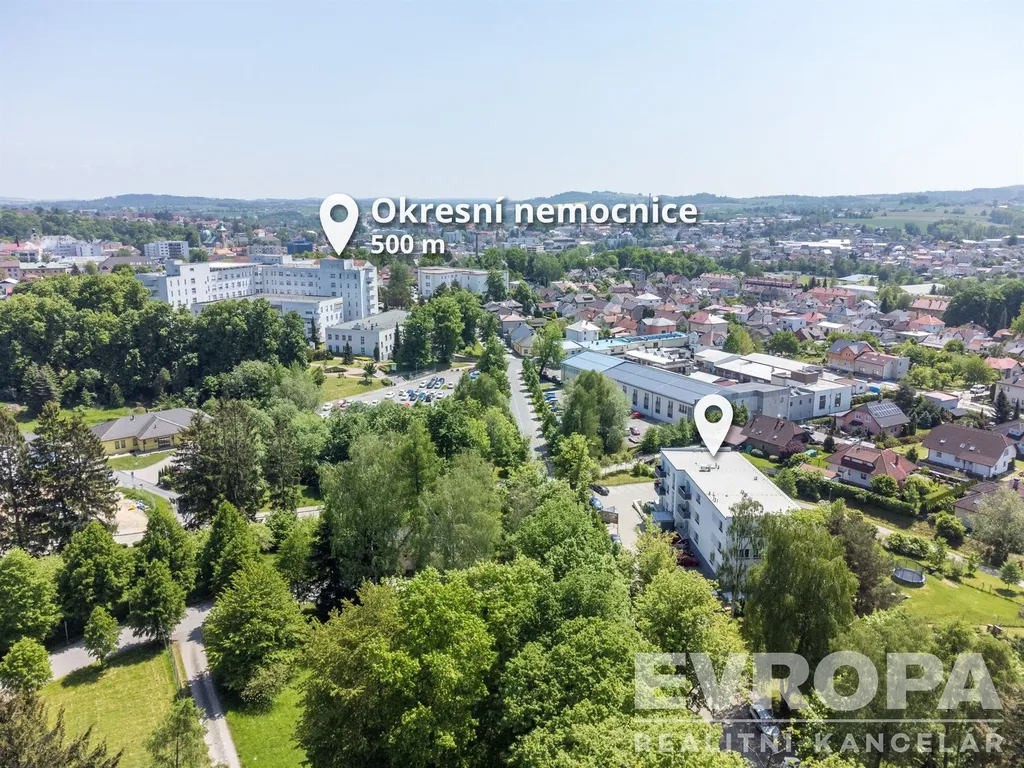 Okolí nabízí veškerou občanskou vybavenost. V docházkové vzdálenosti se nachází okresní nemocnice, mateřské i základní školy. Přímo před domem je zastávka MHD, která zajišťuje rychlé a pohodlné spojení do dalších částí města.